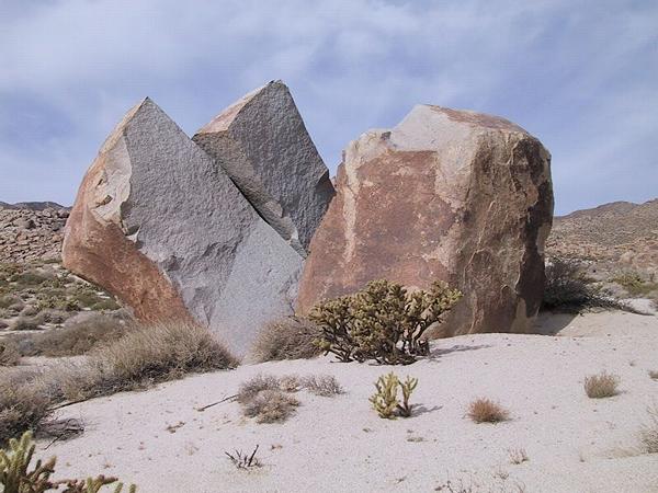 A huge boulder split 3 ways near Piedras Grandes.